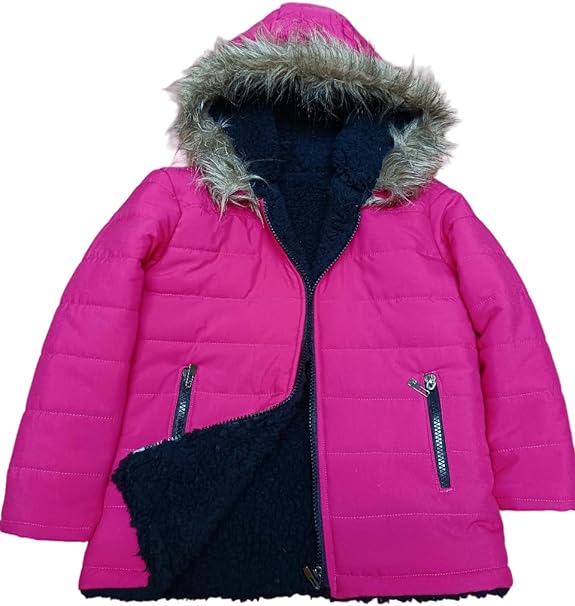 - Bomb Jacket for Boys Girls Quilted Mujer Warm Hood with Fur Size 1/2 Length 41 Bust