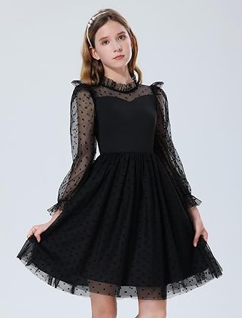 Girls dress made of tulle, a distinctive model Mebius Girls Mesh Puff Sleeve Sweetheart Neck High Waist Flowy A Line Dress Party Special Occasion 6-12Y